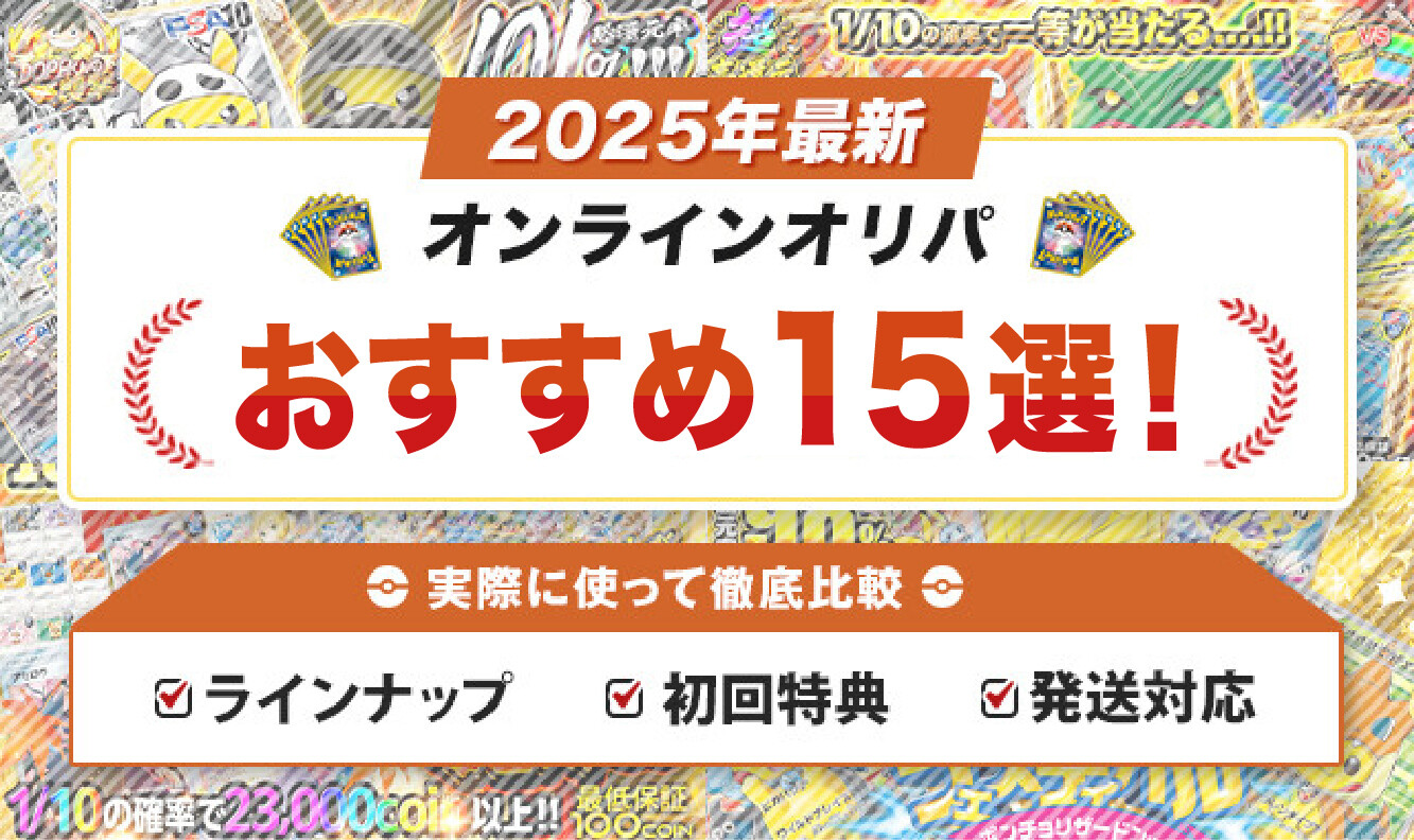 当記事では、安心して使えるオンラインオリパおすすめ15選を大公開します!編集部スタッフが実際に使って、ランキング形式で解説していきます。ネットオリパの失敗しない選び方や各サイトの口コミ評判も記載しています。ぜひオンラインオリパサイト選びの参考にしてください。