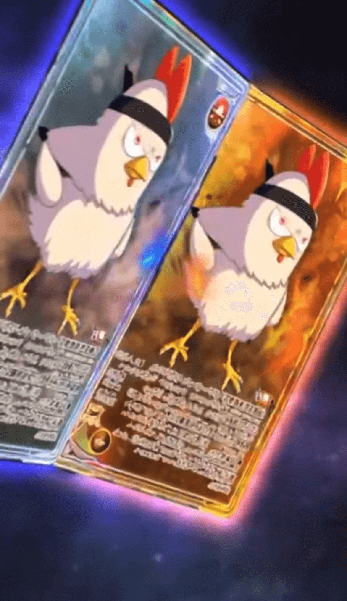 くじ鶏のマスコットキャラが描かれたカード同士がぶつかり合い、カードの色によって下位賞なのか上位賞なのかが分かる仕様のようです。