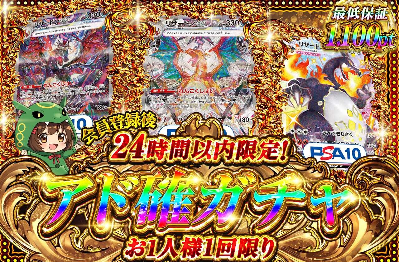 トレしるオリパは、新規登録のタイミングから24時間限定で引けるアド確定が3つあります。アド確は、必ず1口の金額以上のポイントが排出される負けないオリパです。